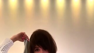 flagSlim american brunette transgirl with small boobs and sexy feet legs strokes her cock
